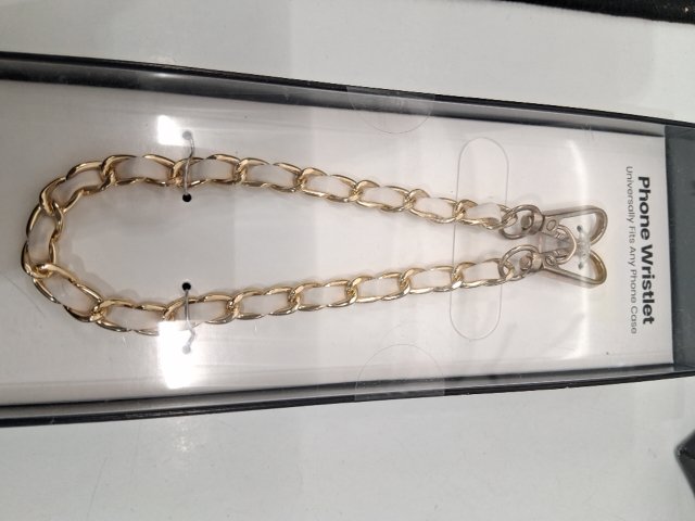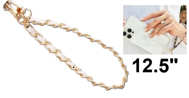 universal fit phone wristlet - 12.5" - Gold Chain/white Leather