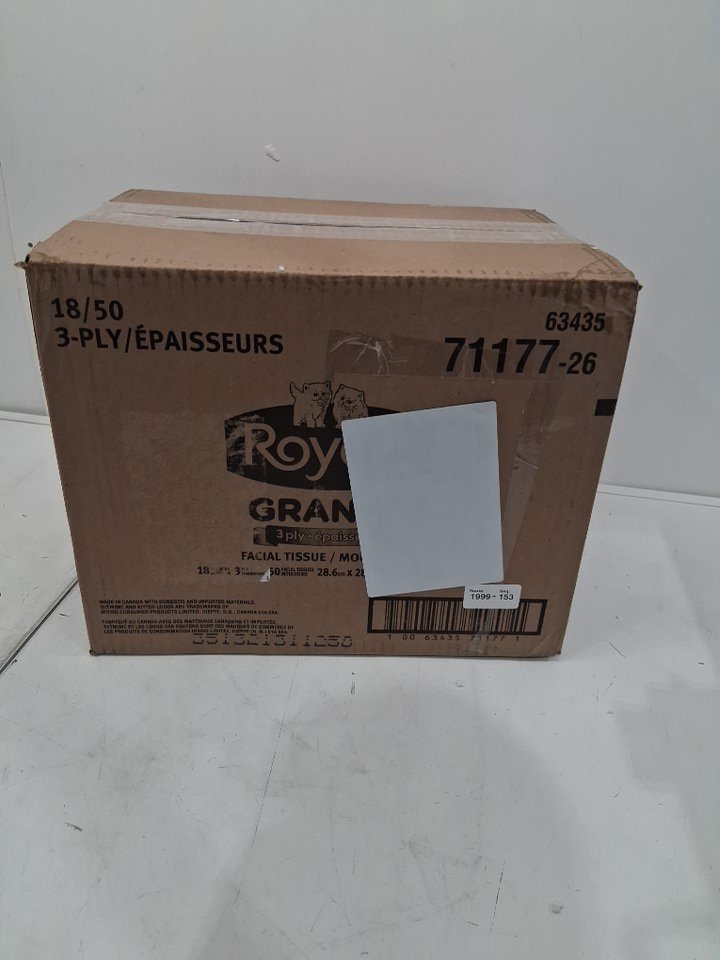 18pk Royale grande 3 Ply Facial Tissues- 11.2" x 11.3" - 50 per box (900 tissues)