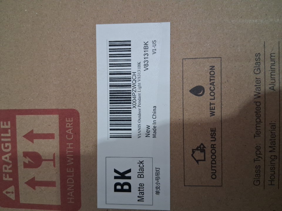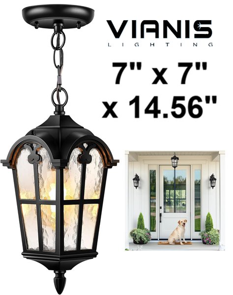 Vianis Vintage Pendant Patio Light Fixture - 7" x 7" x 14.56" - Matte Black (MODEL:V83131BK)