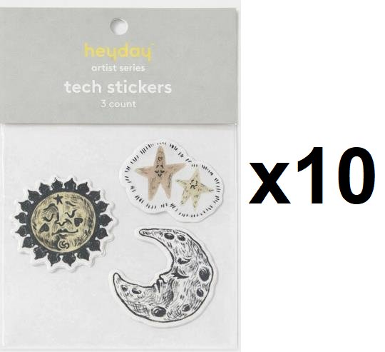 10 heyday 'artist series' tech stickers - SUN/MOON/STARS
