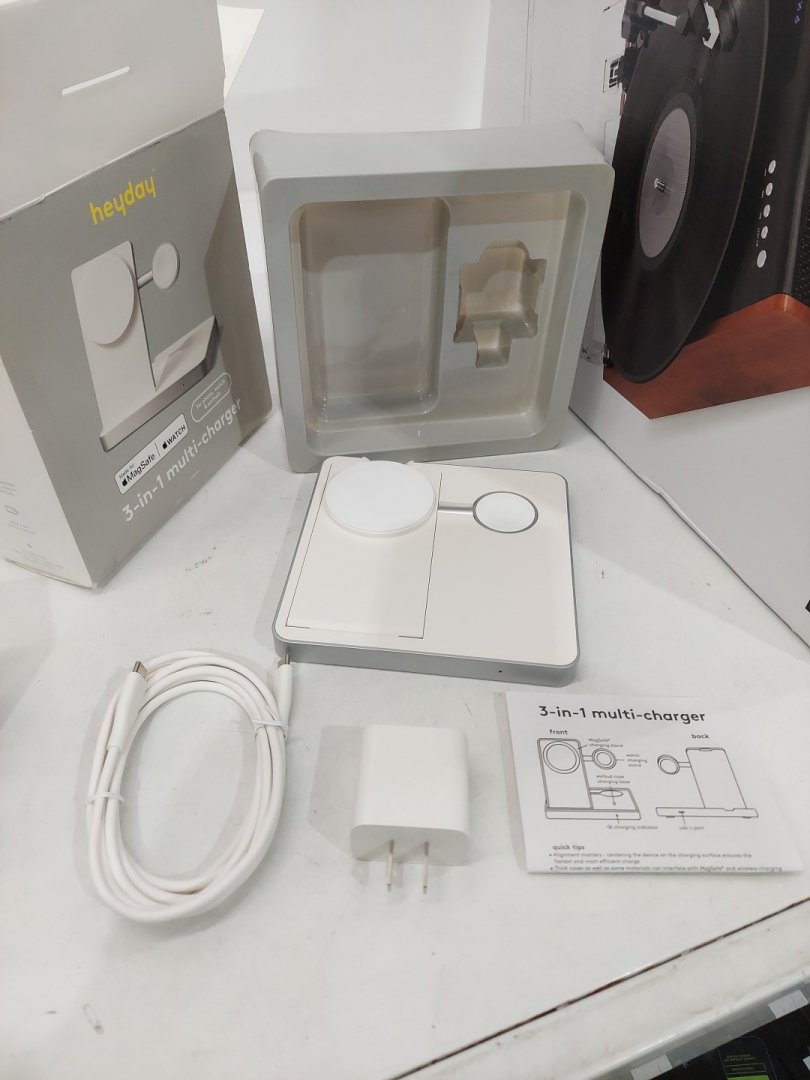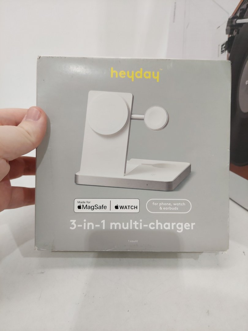 heyday 3-in-1 multi-charger stand made for APPLE Watch, earbuds, iphone & Apple MagSafe - white