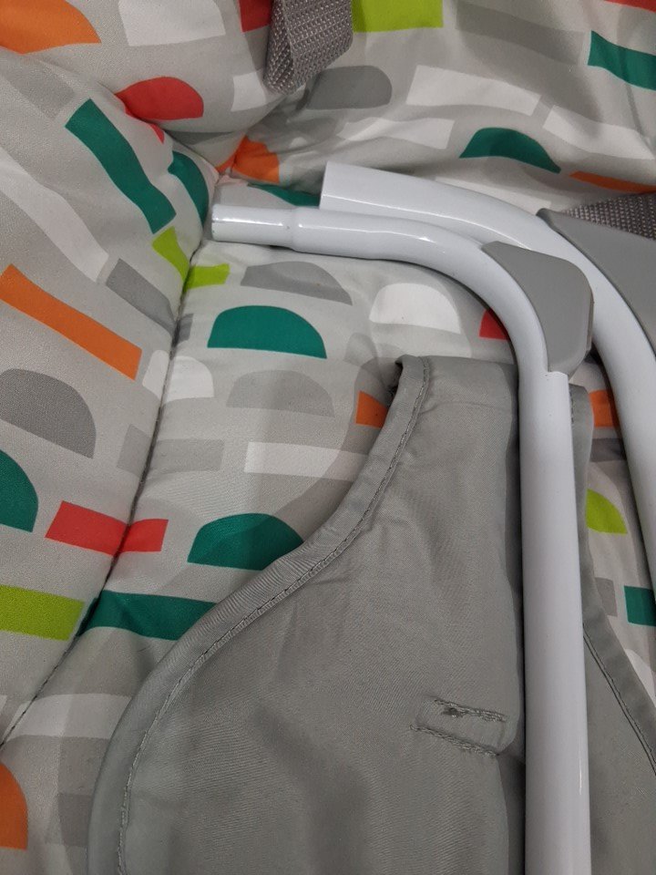 Tested for power and sound. The fabric has a used smell and the fee pads show wear,