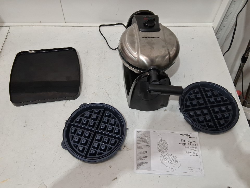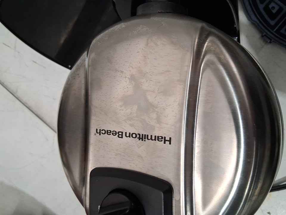 item has oil residue on outside of waffle maker in waffle tins and theres some markings on the outside ( see photos