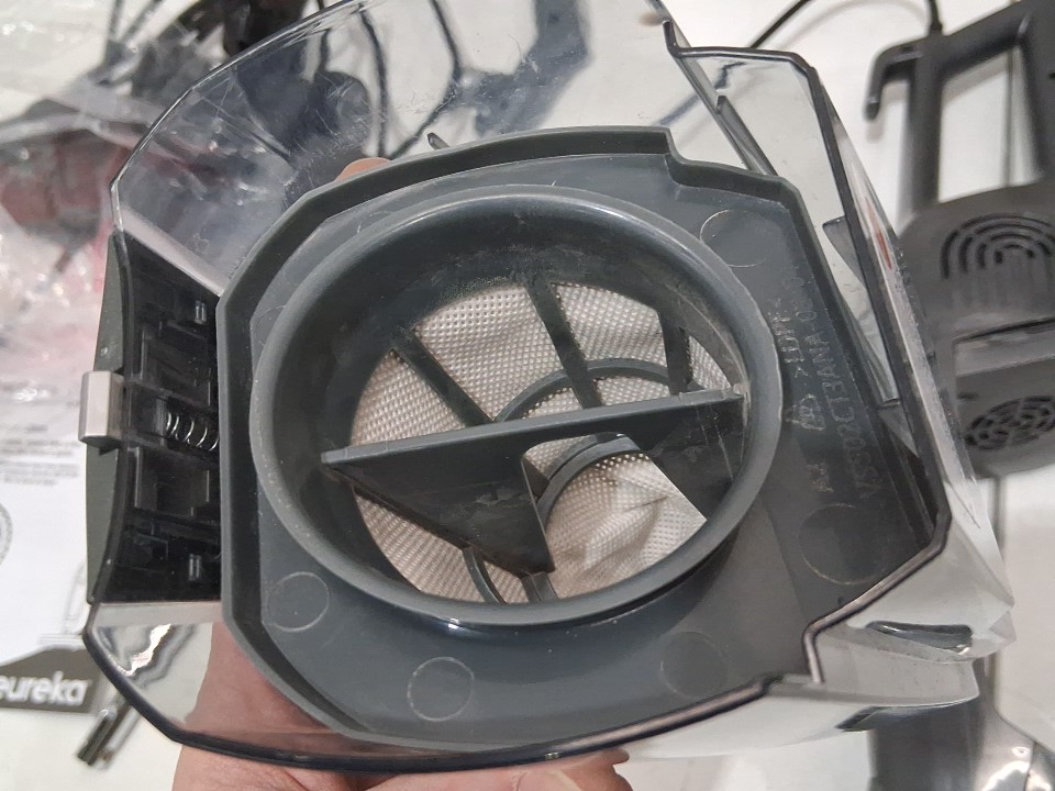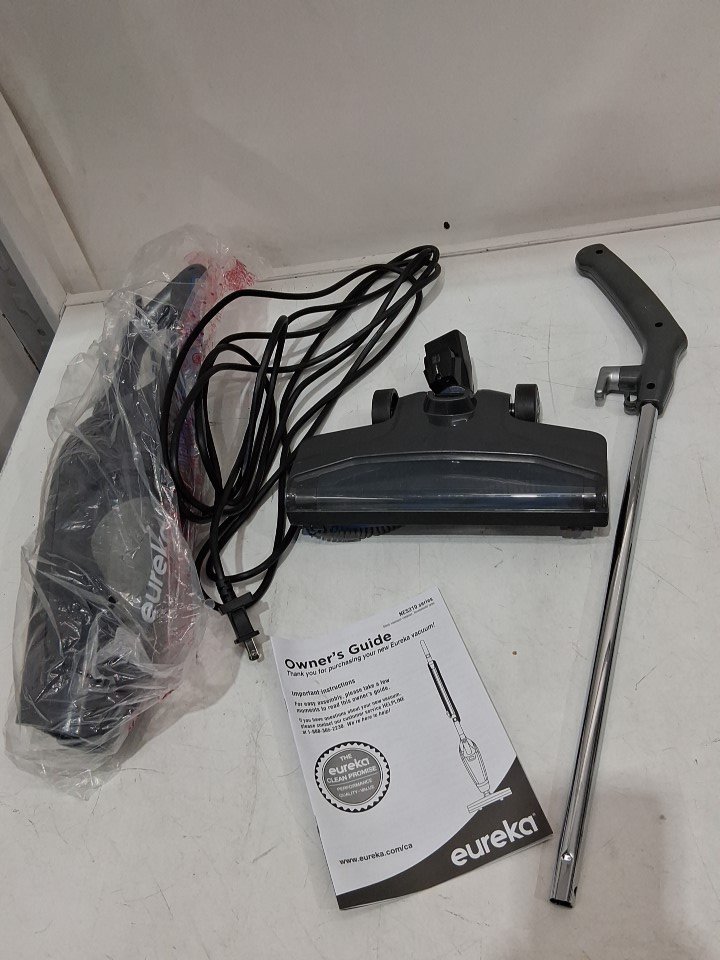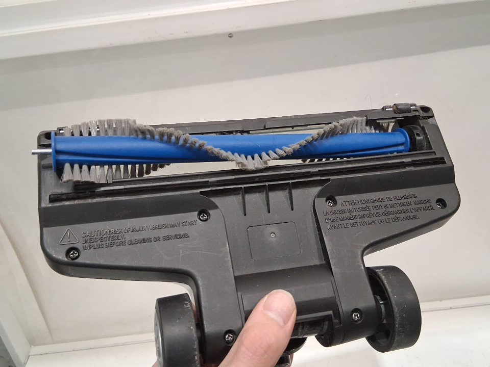 **Tested for power and suction.** Item has minor dust build-up in the main container, hairs/debris around the roller brush from previous gentle use, see photos. Item's roller is not attached to the brush housing and may require a replacement attachment to use the floor roller brush, see photos.