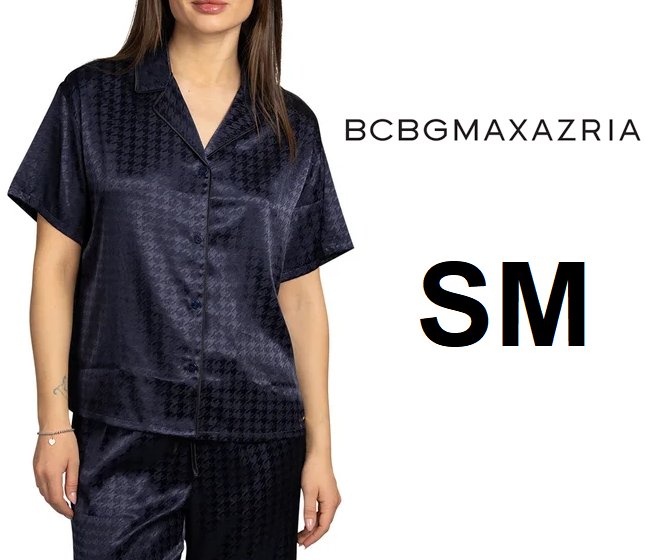 Women's BCBGMAXAZRIA Notched Collar Jacquard Satin Pajama SHIRT - small - navy blue (style: 1926651)