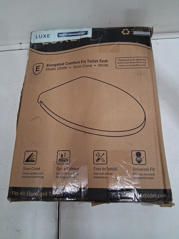 LUXE ELONGATED COMFORT FIT TOILET SEAT WITH SLOW CLOSE QUICK RELEASE HINGES NON SLIP BUMPERS AND FITS WITH LUXE BIDETS, 18.5" x 14" x 1.8" - WHITE (MODEL: 1008E)