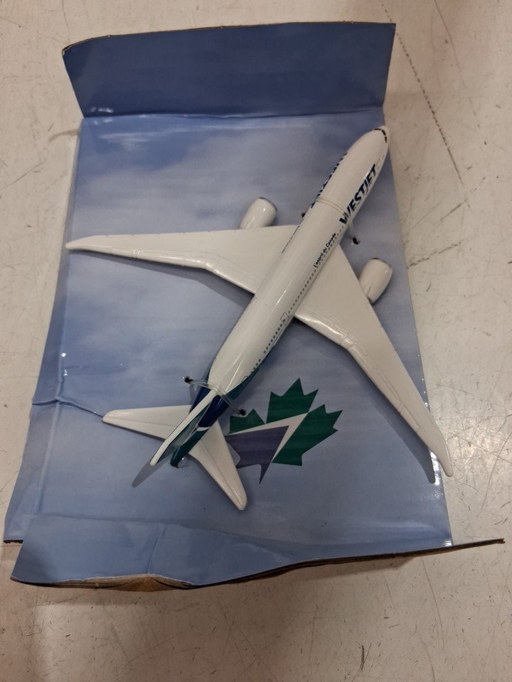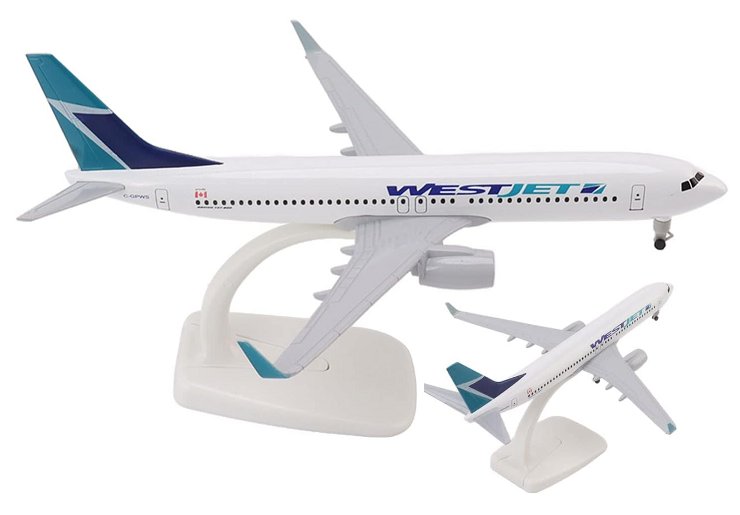 westjet decorative model airplane figure with base - (model: 737-800)