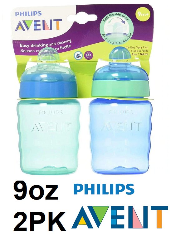 2PK PHILIPS AVENT MY EASY SIPPY CUP - 9OZ - BLUE/GREEN