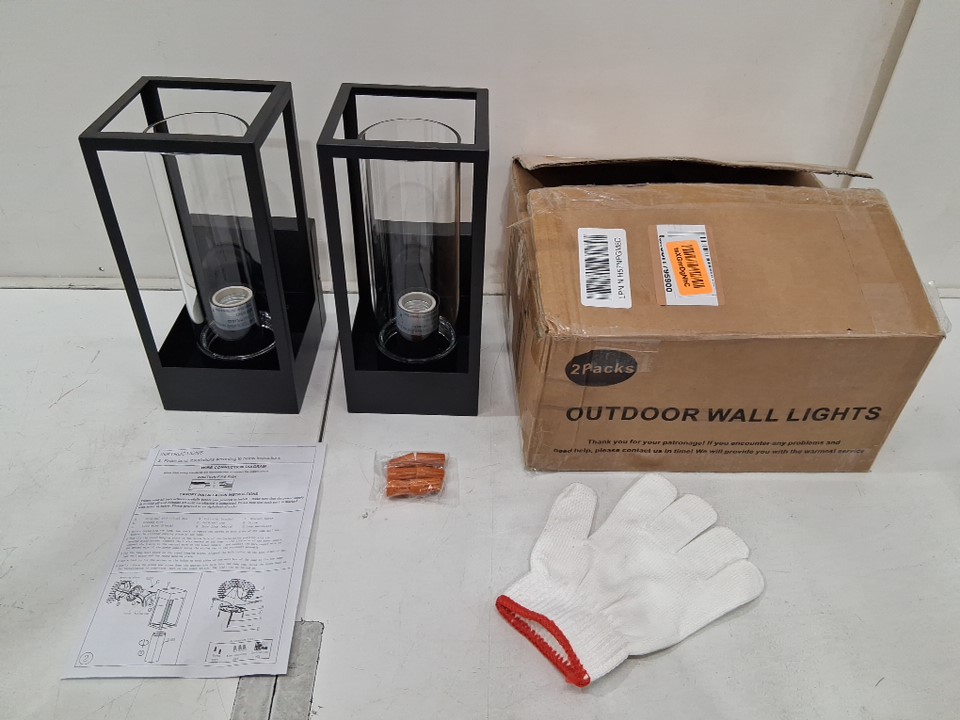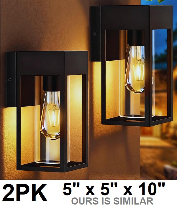 2PK outdoor metal wall light with glass light covers - 5" x 5" x 10" - e26 bulb base - 120w - 120v - black