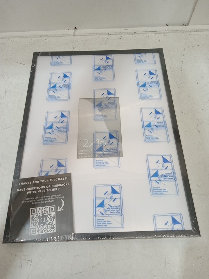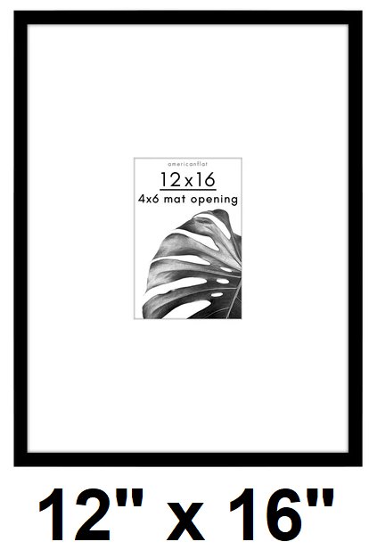 Americanflat Picture Frame with Polished Plexiglass - 12" x 16", matted to 4" x 6" - black