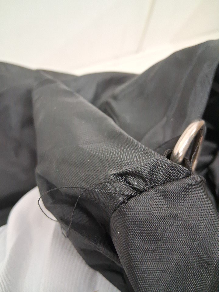 Minor frayed threading around some of the metal grounding loops. (See photos)