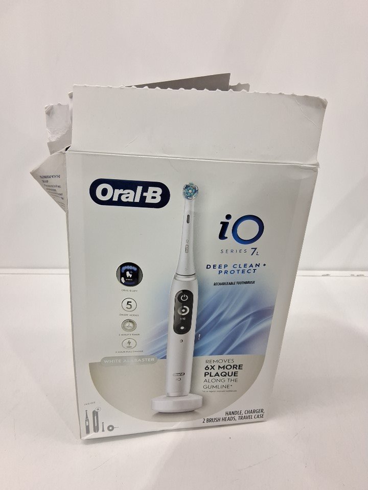 oral-b io series 7L deep clean and protect rechargeable toothbrush with two brush heads - white ( model: 3768)