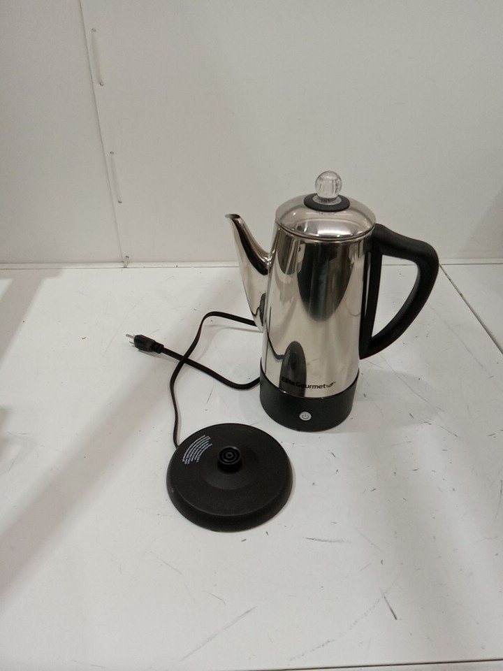 Elite Gourmet Electric 6-Cup Coffee Percolator with Keep Warm, Clear Brew Progress Knob & Cool-Touch Handle - Cordless Serve, Stainless Steel (Model: EC140)