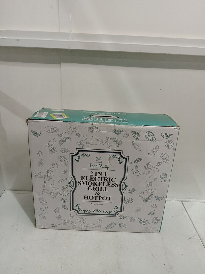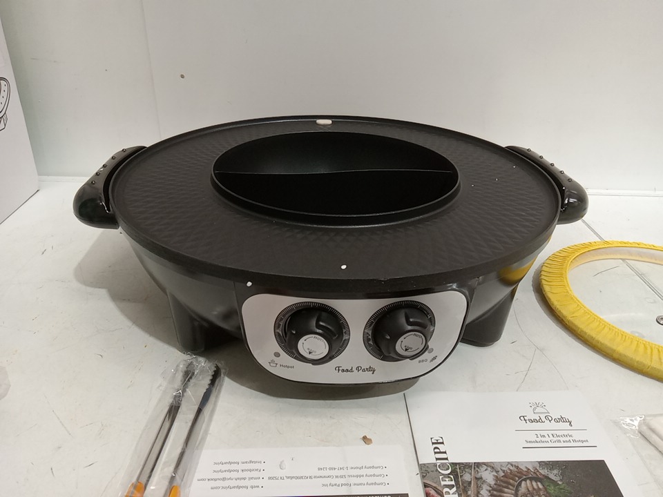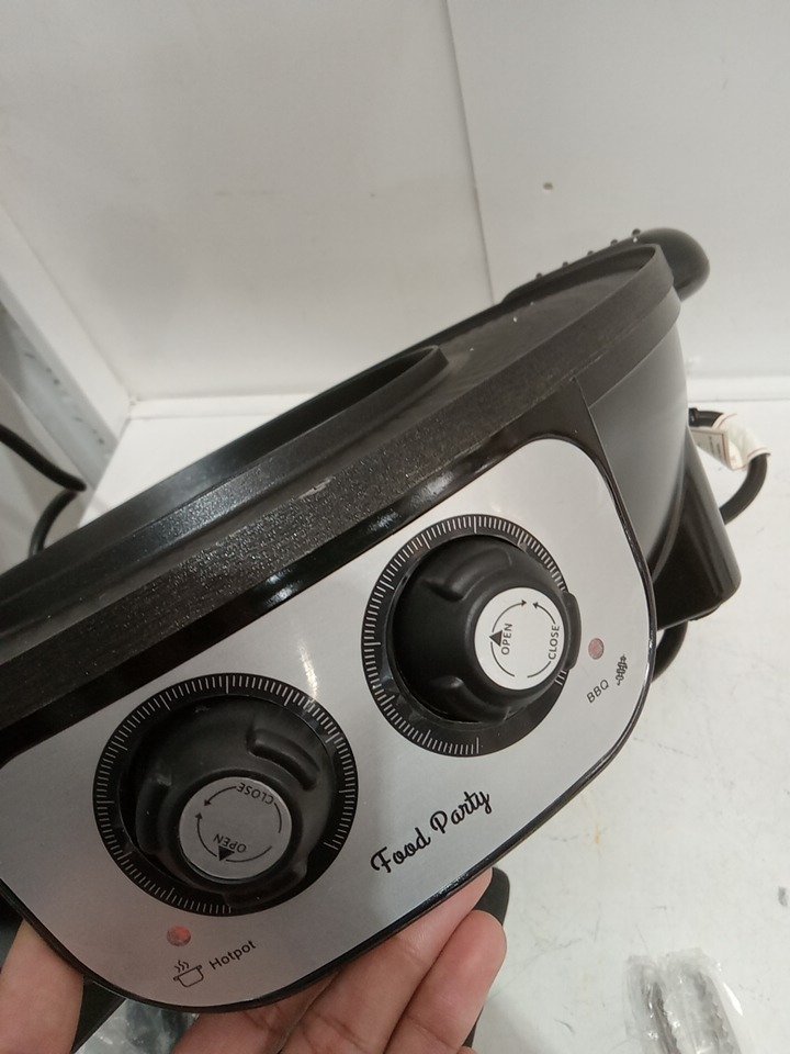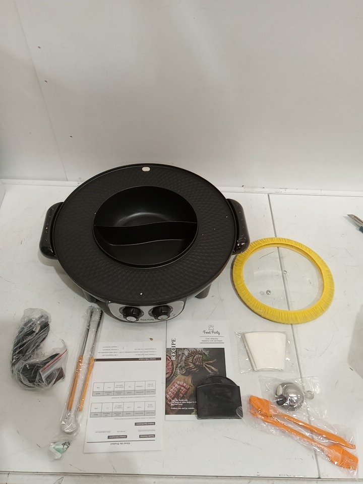 Food Party electric smokeless shabu shabu 2 in 1 Chinese/Korean Hotpot & BBQ grill for indoor & outdoor cooking, 20" x 7.9" x 18.5", black, (model: fpj202)
