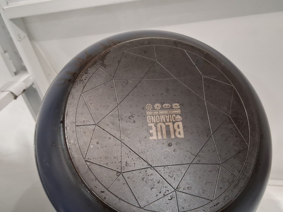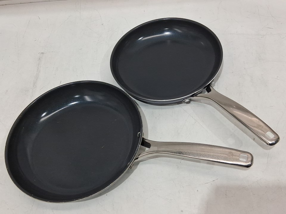 Item's 11" pan arrived with light wear/discolouration from previous gentle use; the 9.5" pan appears clean/unused, see photos.