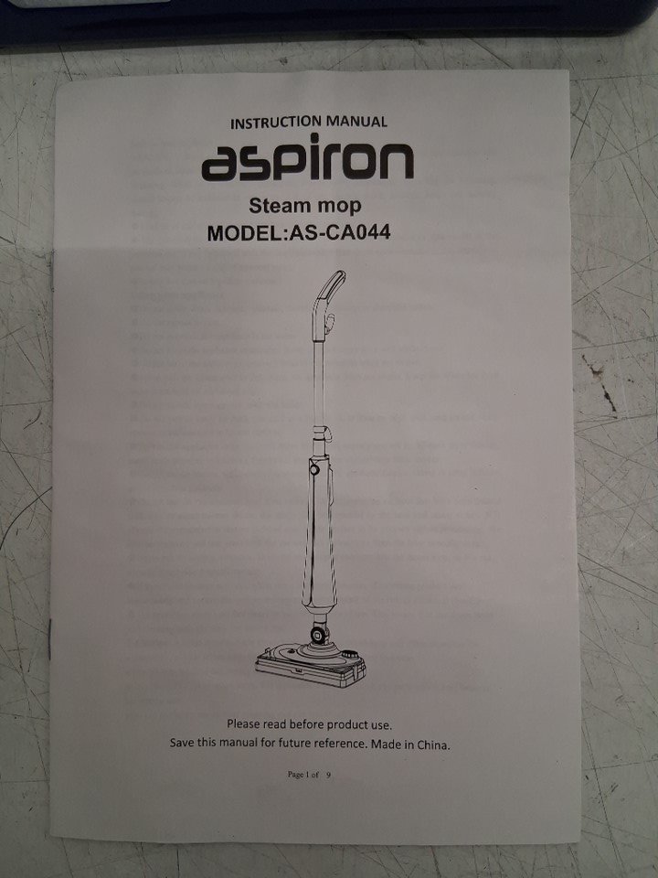 There are water droplets in the tank due to previous use, it does not look like the mop attachments have been used more than once, if at all. (See photos) The mop was tested for basic power.