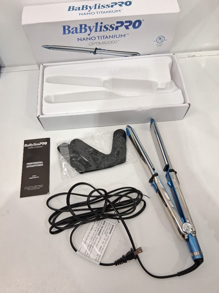 babylisspro nano titanium stainless steel dual ceramic hair straightener - 1" - silver/blue (model: babss3300tuc).