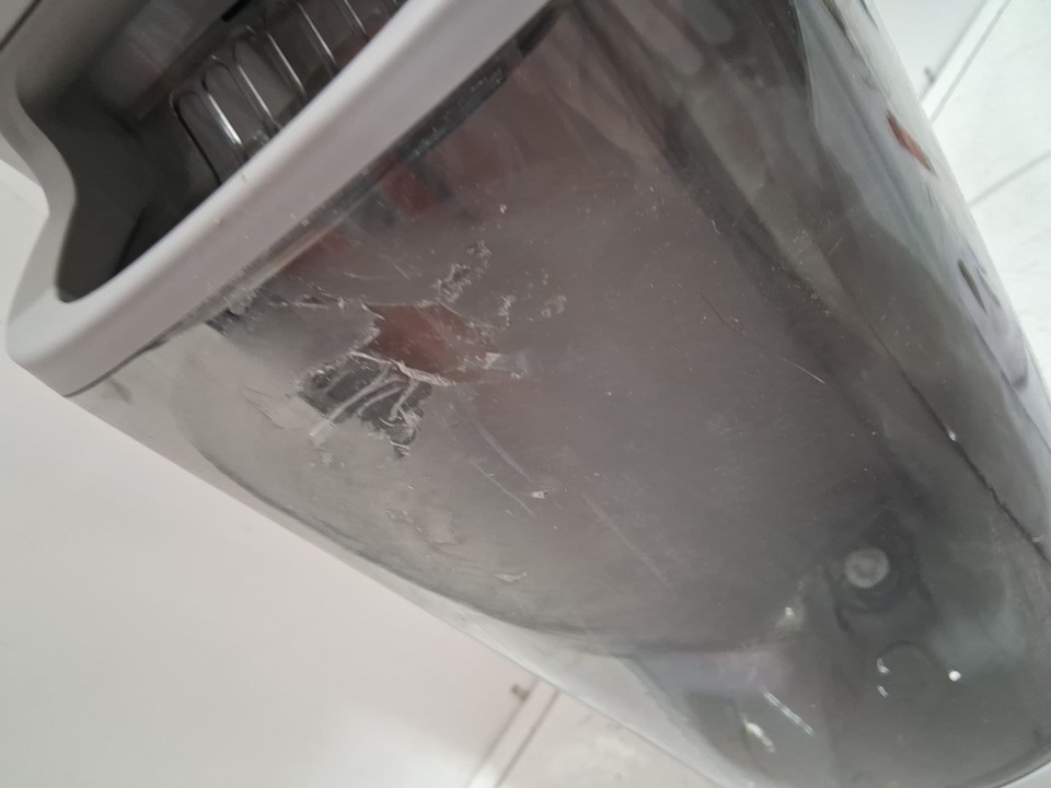 Item has some type of residue on front and water debris.