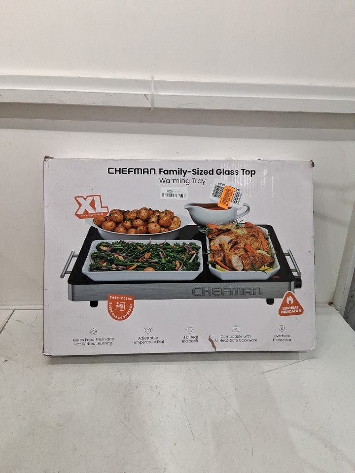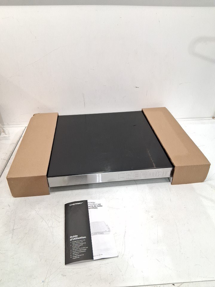 CHEFMAN FAMILY SIZE GLASSTOP WARMING TRAY WITH TEMPERATURE CONTROL - 21" x 16" - 450W - BLACK/STAINLESS STEEL (MODEL: rj22-tc-v3-ca)