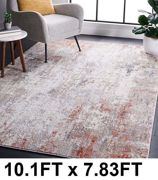 MODERN ABSTRACT DESIGN ACCENT RUG - 10.1FT x 7.83FT - RED/WHITE/GREY