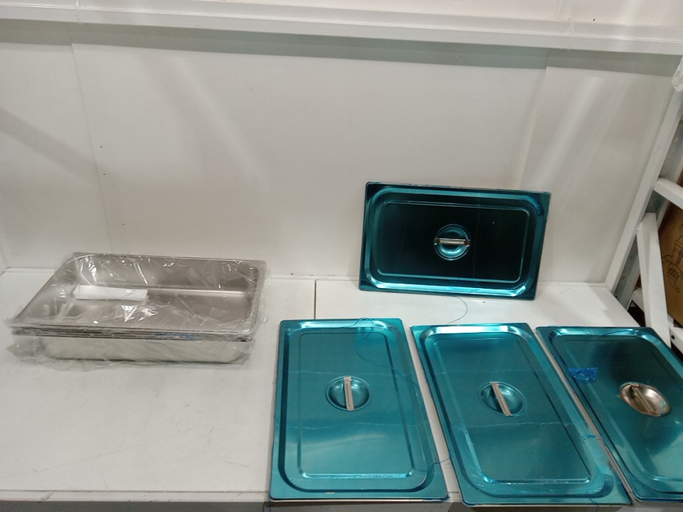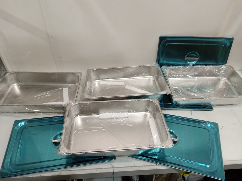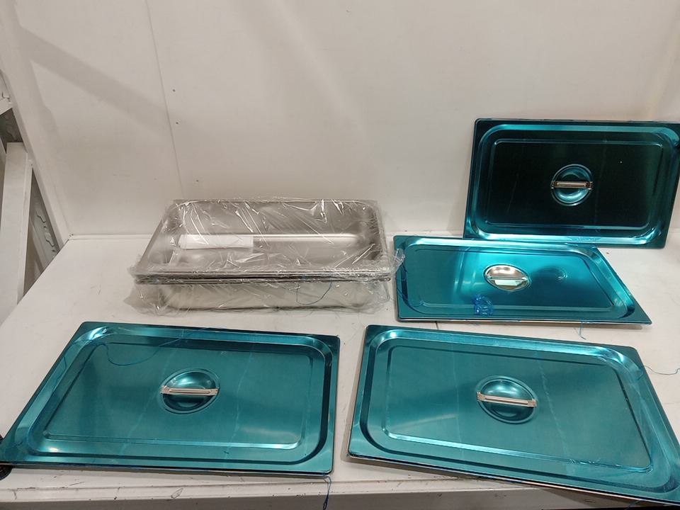 4PK Stainless Steel Hotel Food Tray Pans with Lids - 20" L x 12" W x 4" D - Silver (Model: JZY-2003)
