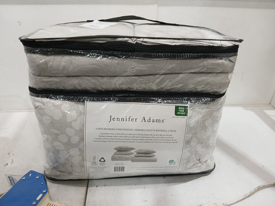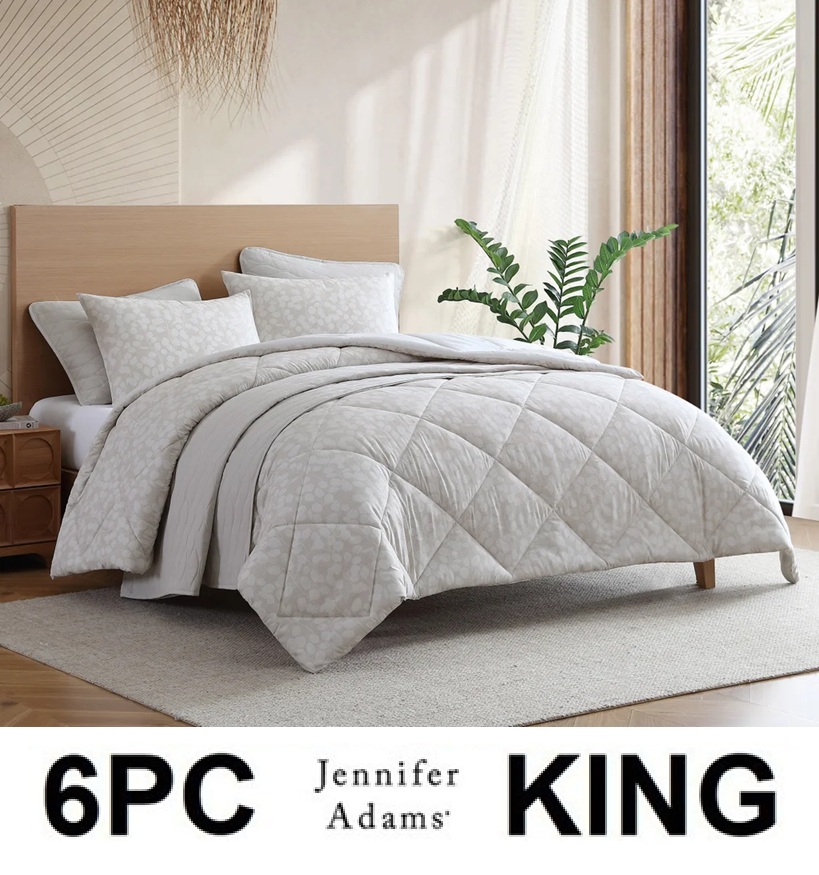 6pc jennifer adams reversible all season comforter bedding set - king - Tan/white (style: 1796281)