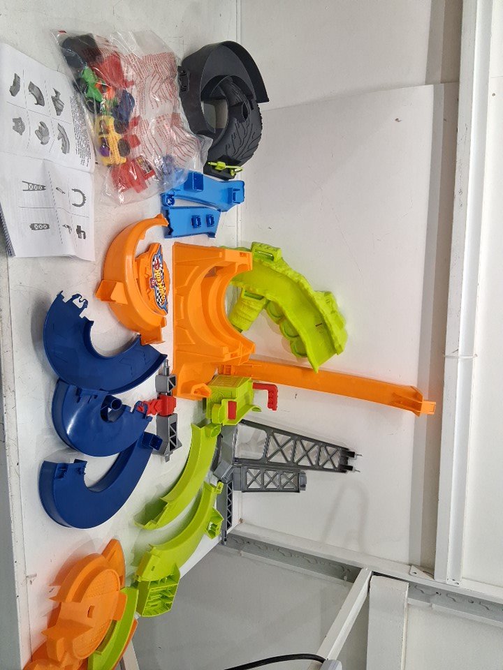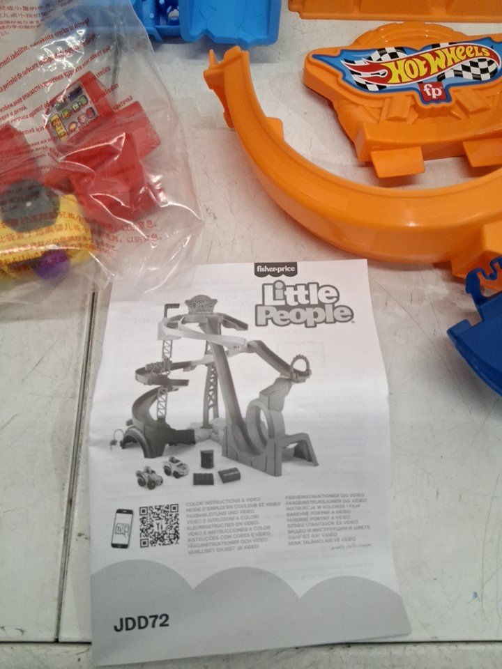fisher-price little people hot wheels toddler spiral stunt speedway race track playset - 18+ months - multi colour (model: jdd72)
