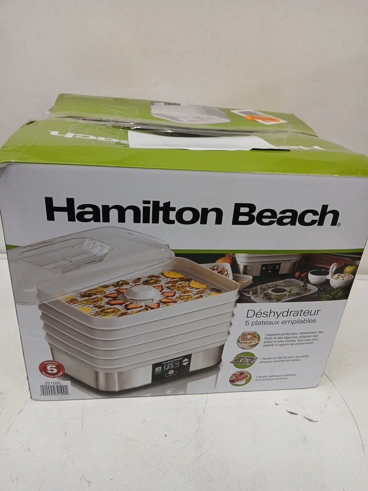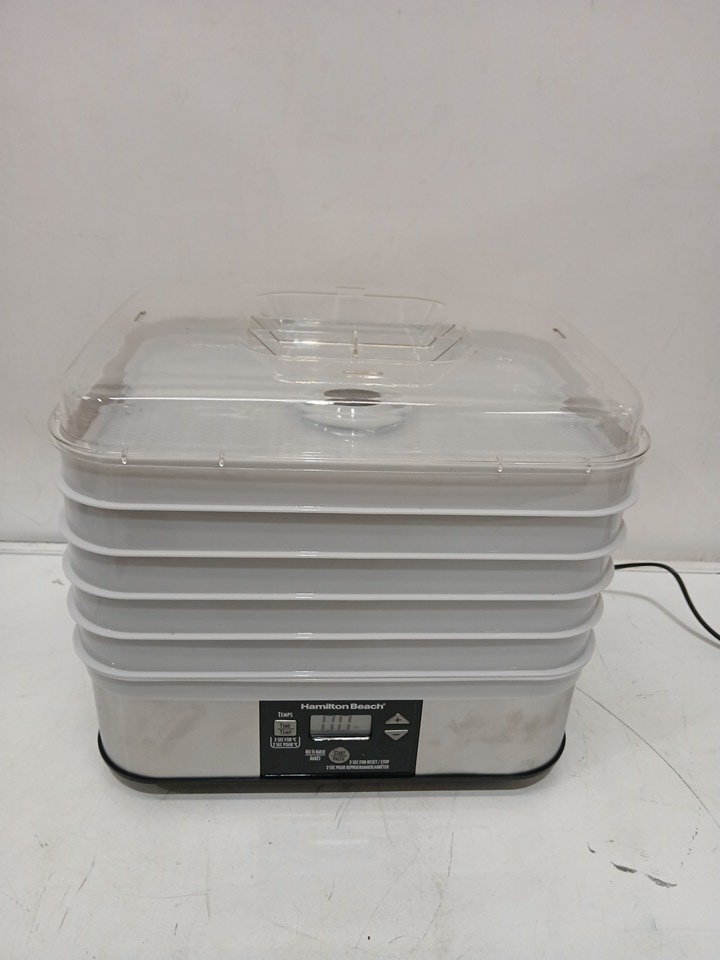 HAMILTON BEACH 5-TRAY STACKABLE ELECTRIC FOOD DEHYDRATOR - WHITE (MODEL: 32100C)