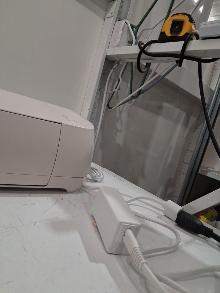 Product has a light layer of dust present through out the surface The products paper has one sheet that has been cut into This product was tested for power. The bottom of the product has a foam stopper missing.