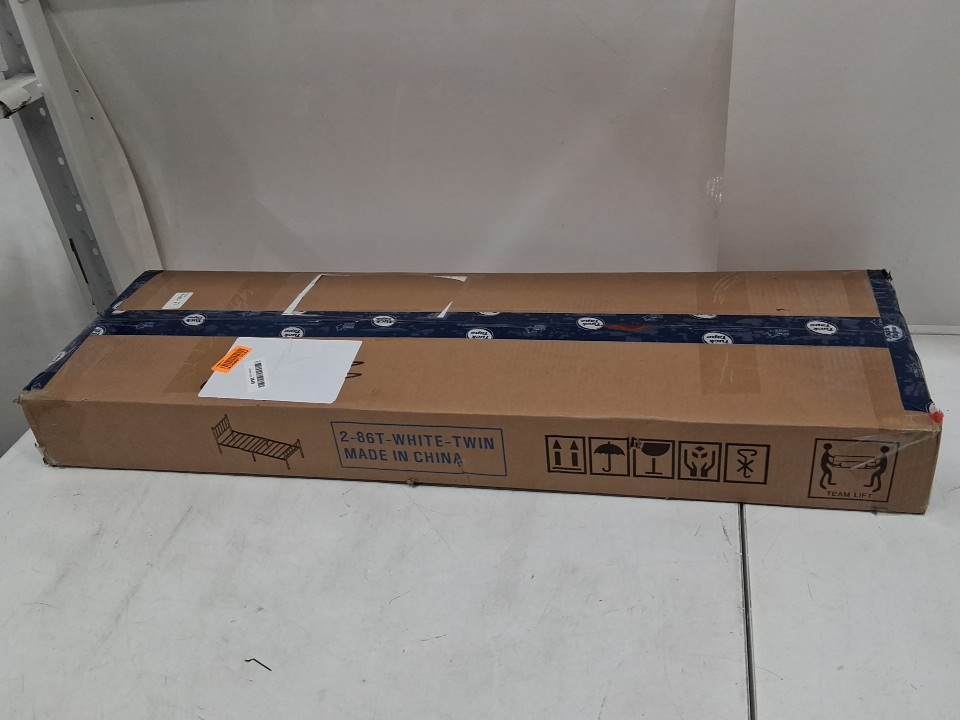 fullfurnique Metal Platform Bed Frame - twin, Iron-Art Headboard and Footboard, Steel Slat Support - White (model: 2-86t-white-twin)