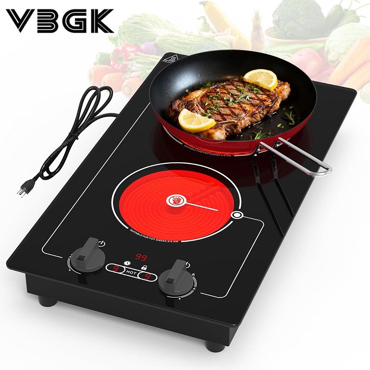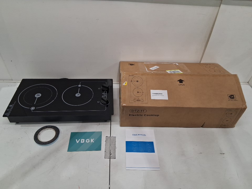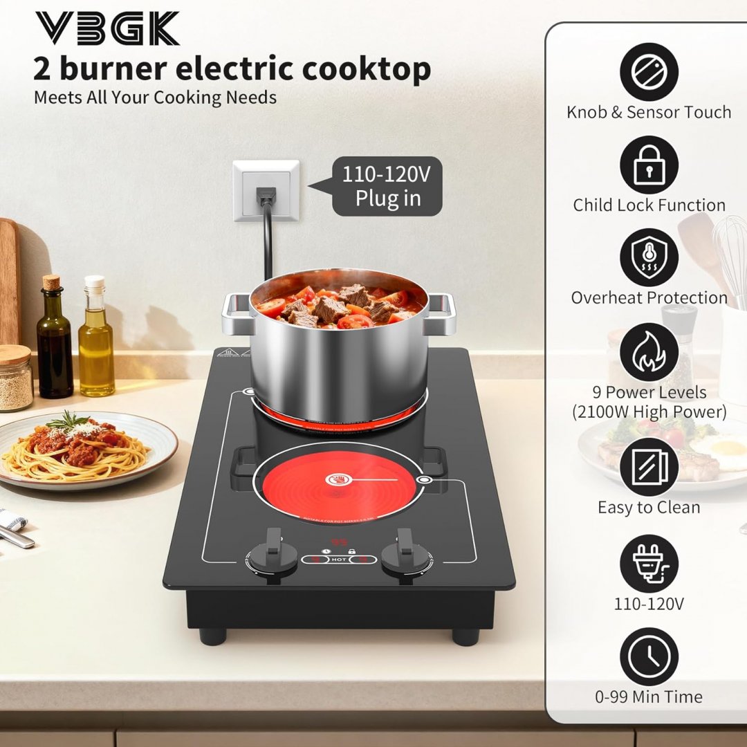 vbgk 2-burner electric cooktop with Knob & Touch Control - 9 Power Levels - 110v-120V - 2100W - black (model: dt2-11)