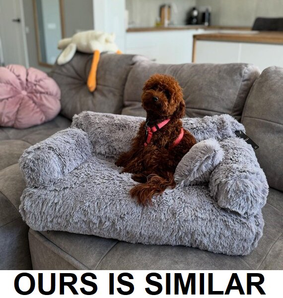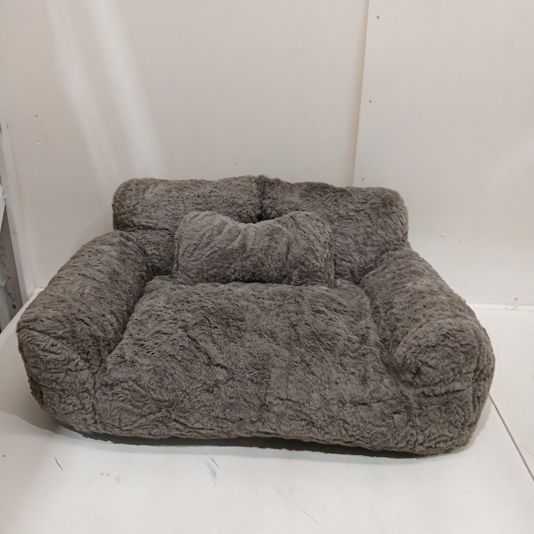 PLUSH FAUX-FUR PET SOFA BED WITH BONE SHAPED PILLOW - 28" - TAUPE GREY