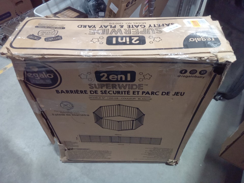 REGALO 2-IN-1 8-PANEL SUPER WIDE METAL SAFETY GATE/PLAY YARD - FITS OPENINGS UP TO 194" - 28" HIGH - WHITE (MODEL: 1350DS)