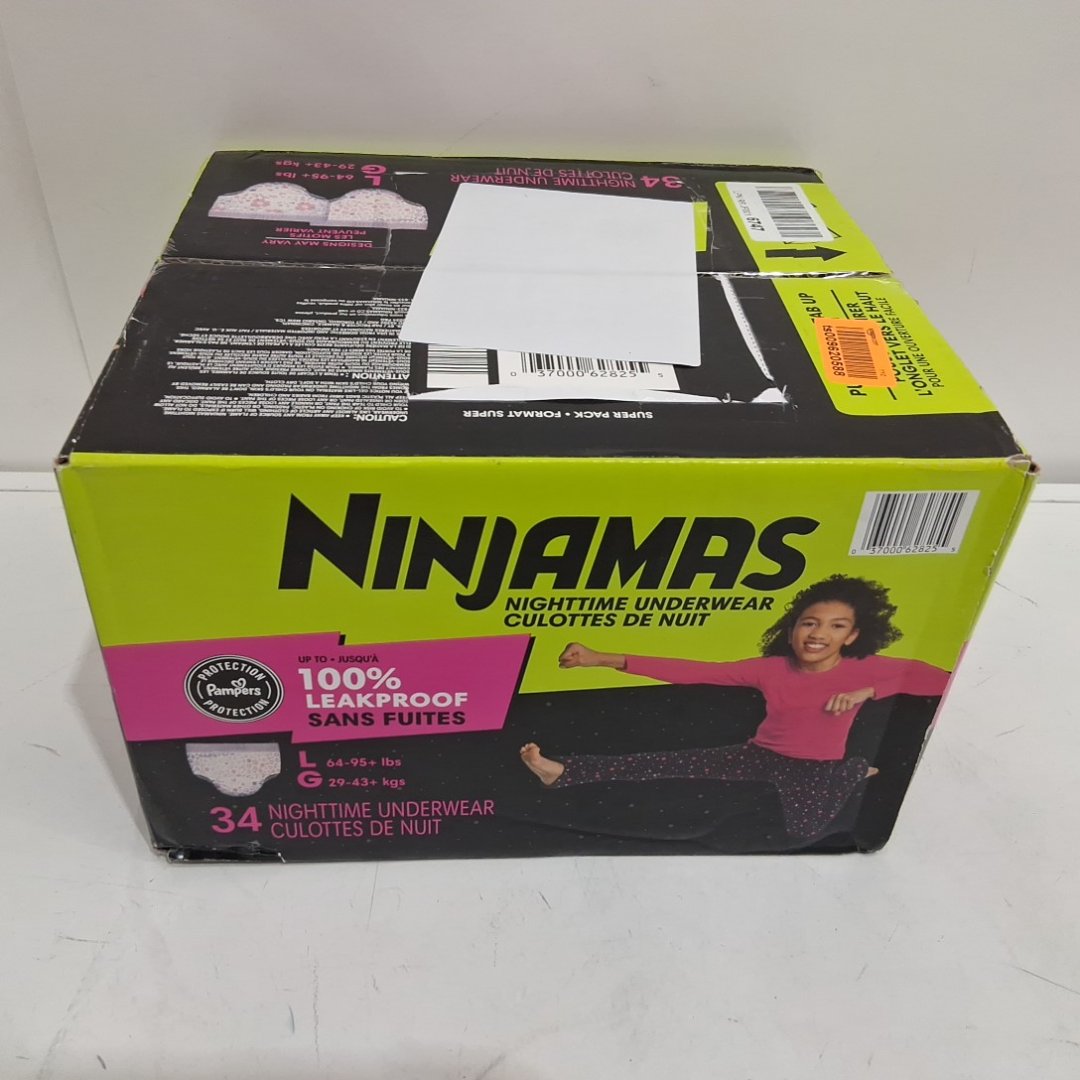 34PK GIRL'S NINJAMAS NIGHTTIME UNDERWEAR WITH ODORMASK & ALL-NIGHT LEAK PROTECTION - LARGE (64-95LBS)