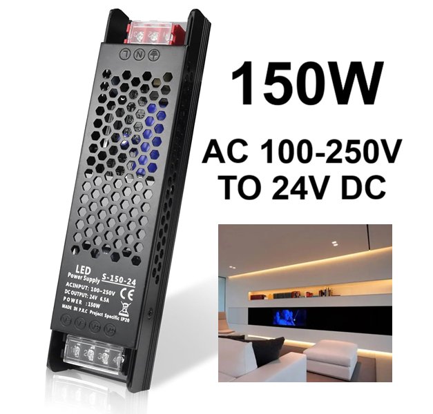 LED DRIVER SLIM POWER SUPPLY - AC 100-250V TO 24V DC ADAPTER - 150W - 6.5A