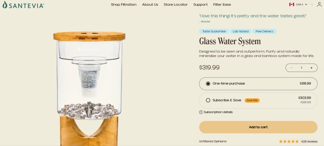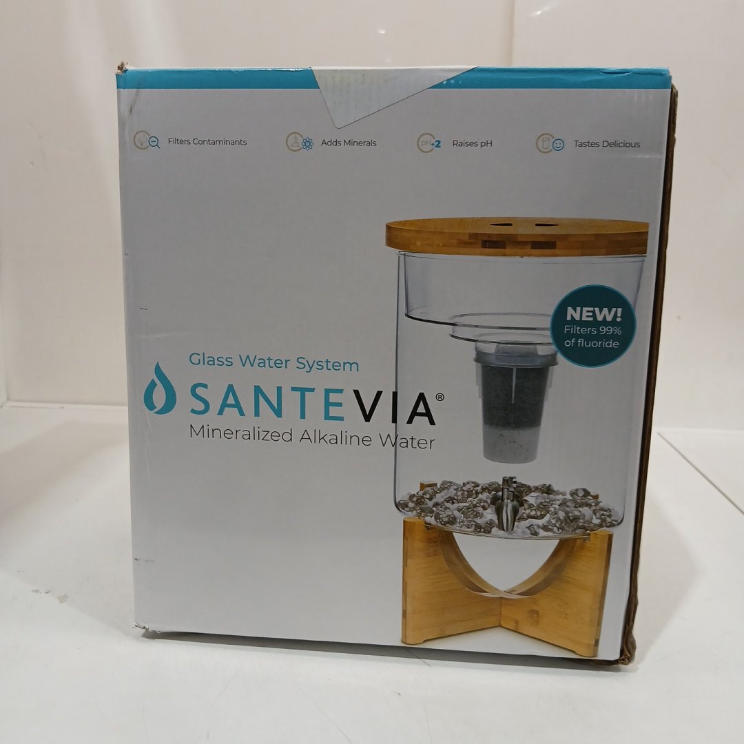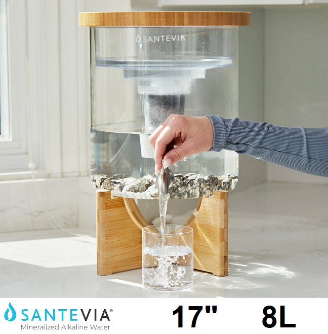 santevia premium mineralized alkaline water glass water system with bamboo stand - 8l - (model: 9gs-300)