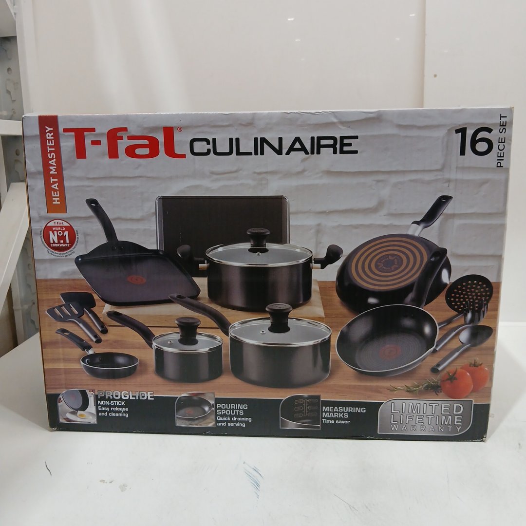 16PC T-Fal Culinaire Proglide Non-stick Aluminum Cookware Set with Heat Mastery - Black (Model: E5160675)