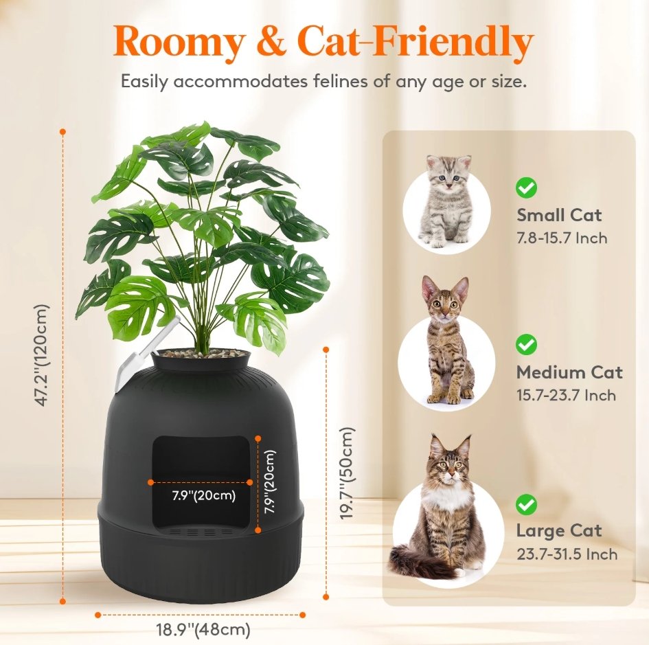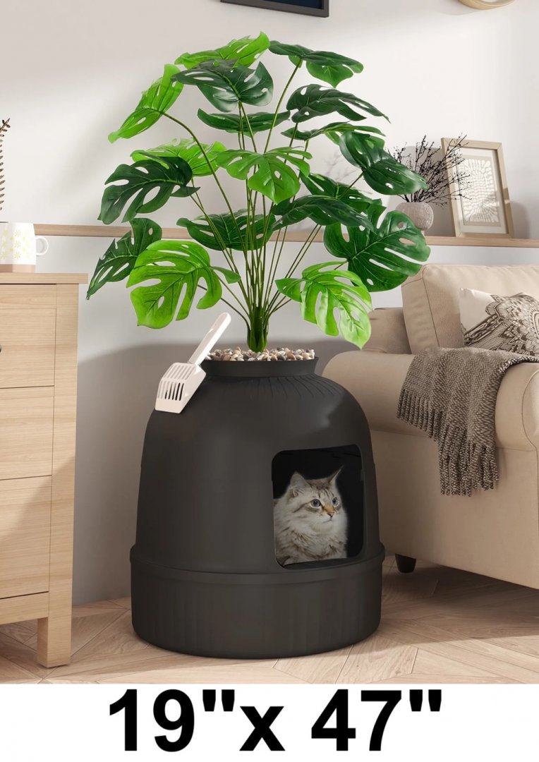 Lifewit cat Litter Box with Faux Plant, Hidden Enclosure and Odor Control - 19" x 47" - black - (model: 23061.01bl.v2)