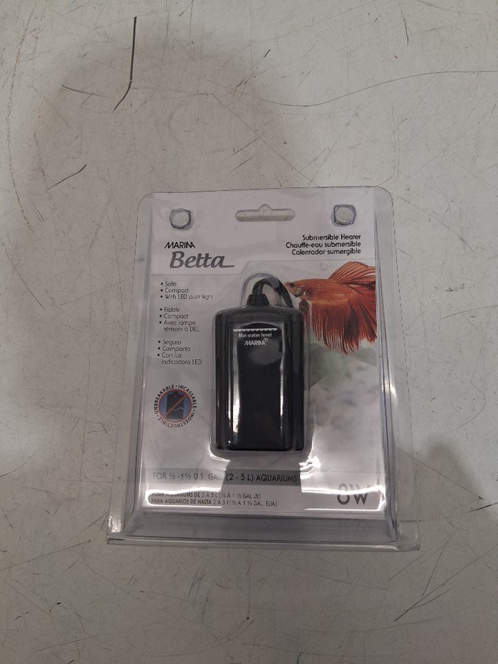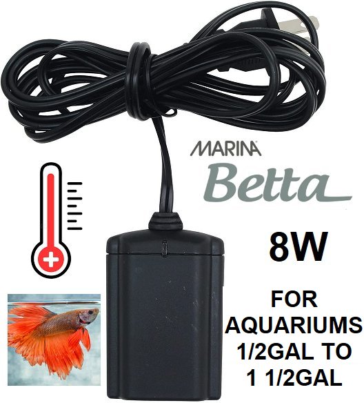 MARINA BETTA CORDED ELECTRIC AUTOMATIC SUBMERSIBLE FISH TANK AQUARIUM WATER HEATER - FOR AQUARIUMS 1/2GAL TO 1 1/2GAL - 8W - BLACK