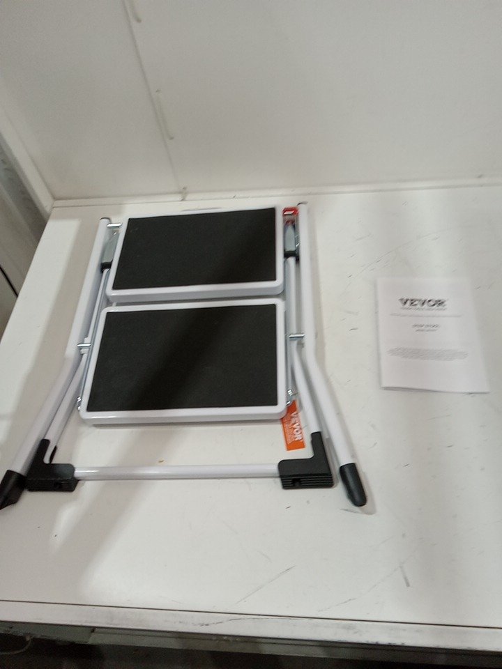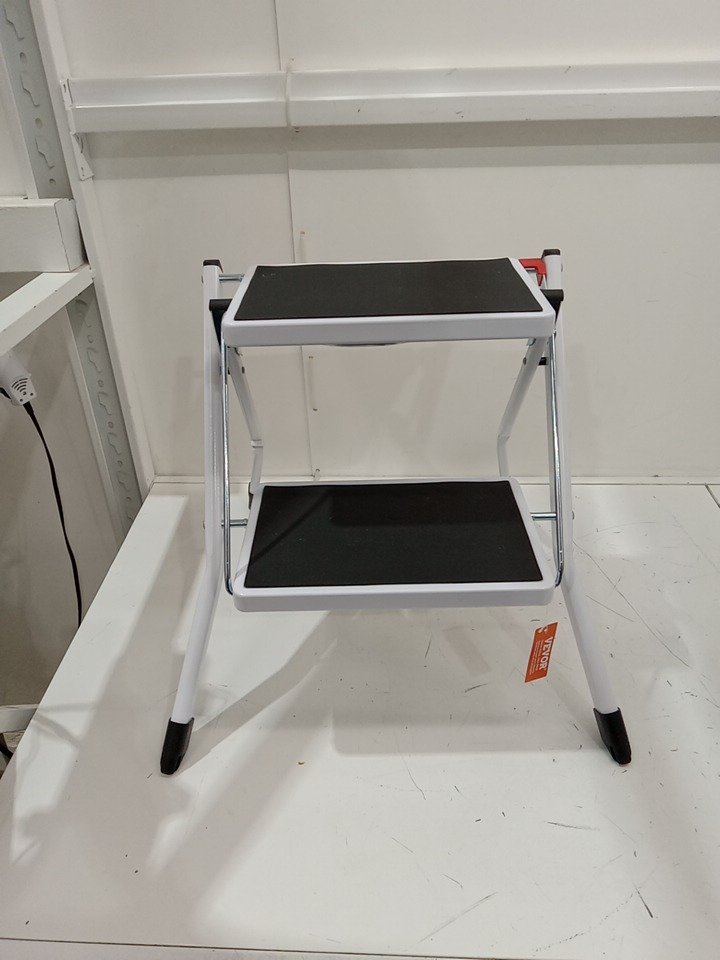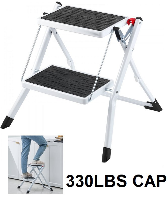 Ergonomic Folding Steel Step Stool with Wide Anti-Slip Pedal - 2-Step 330lbs Capacity - black/white (model: wk2031)