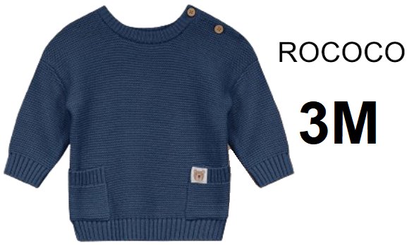 INFANT ROCOCO knit cotton blend long sleeve sweater - 3m - navy blue / bear (style: 2414444)