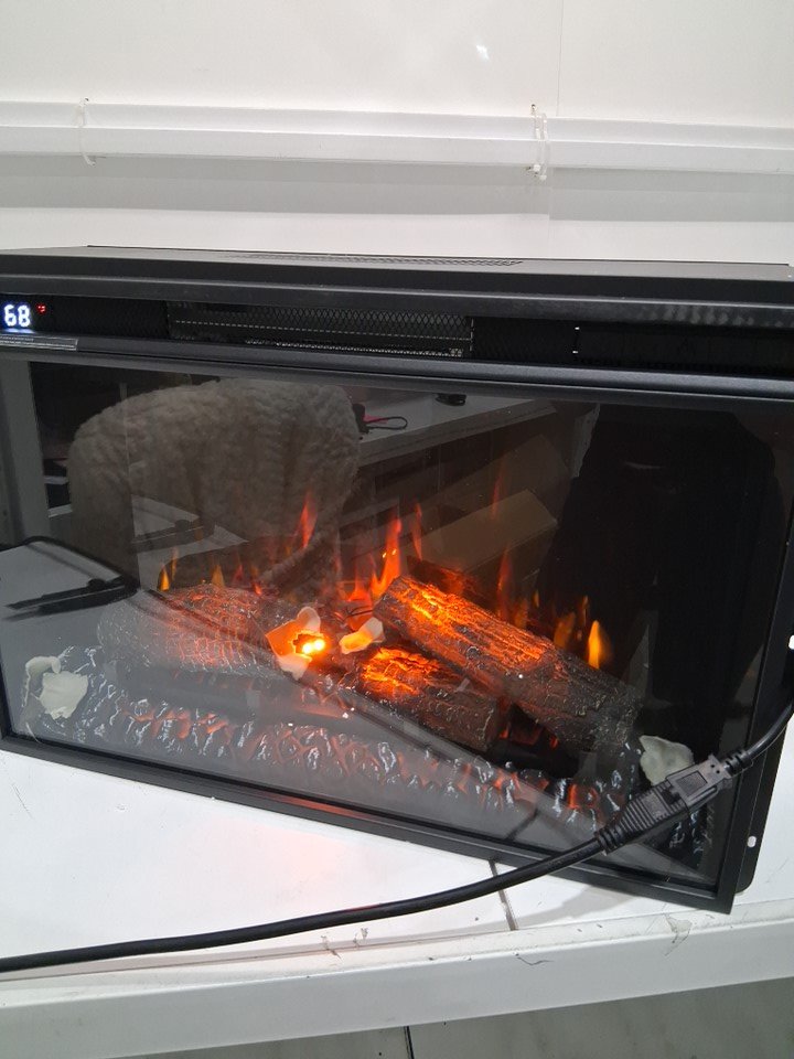 The item came to us with the logs in the display case unfortunately cracked and broken. The logs should not affect the function of the item. Tested for power and function.