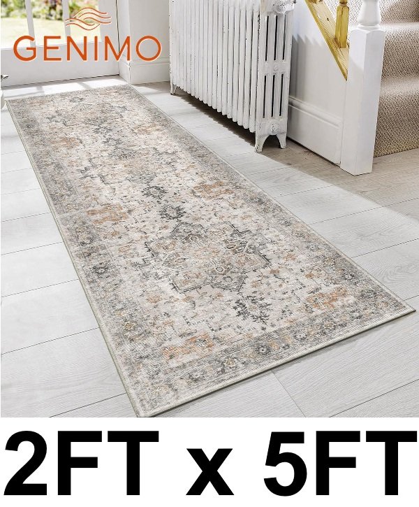Genimo non-Slip Low Pile, Machine Washable Area Runner Rug - 2FT x 5FT -Taupe/ Multicolour