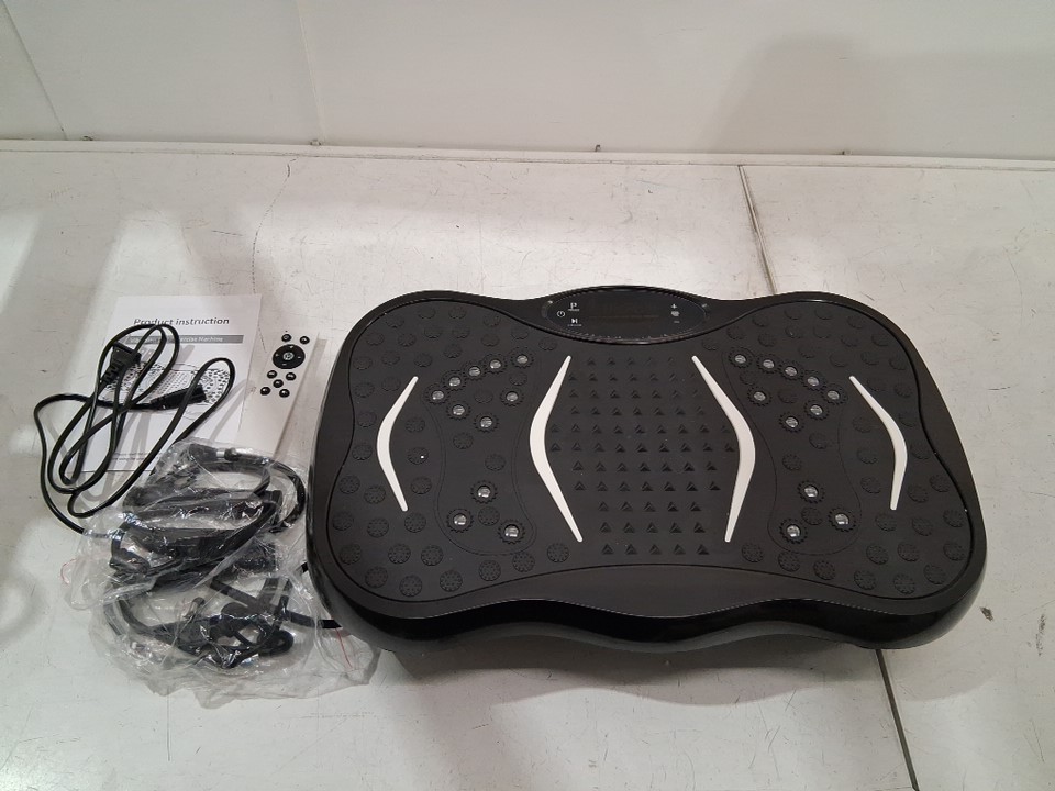 ULTRATHIN body slimming vibration plate with elastic handles - 300lb max - black - (model: TUD-305)