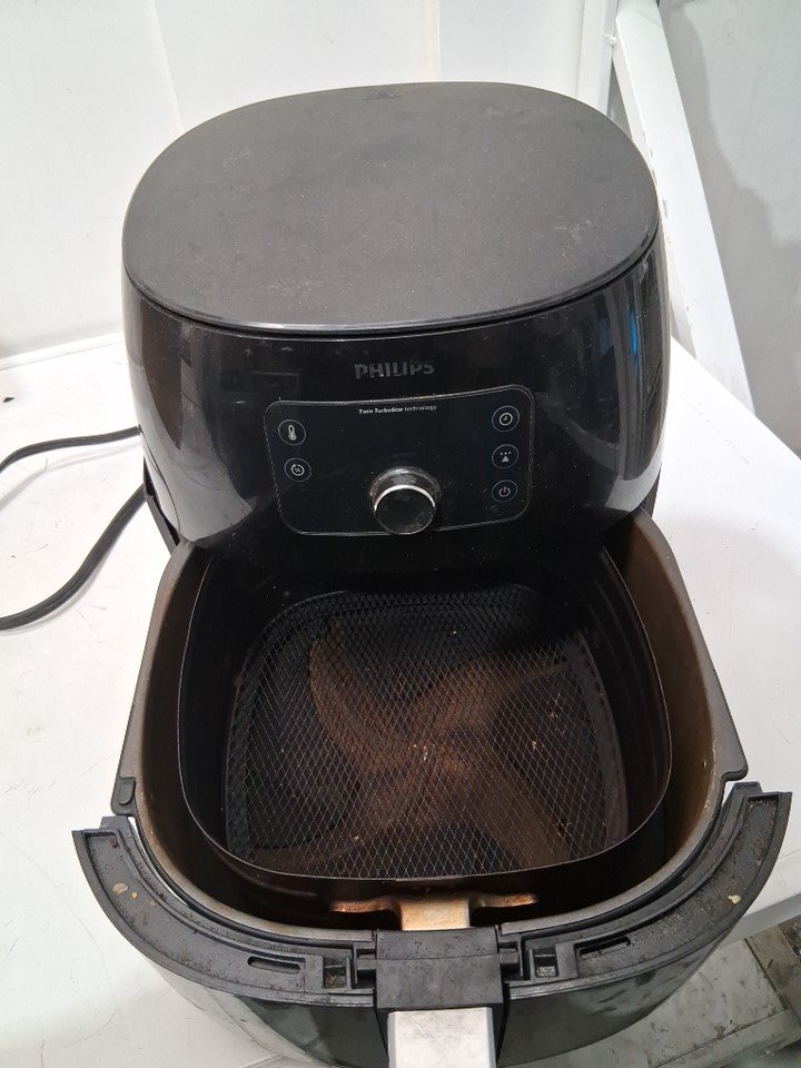 Tested for power/function. Ware, residue, and damage to shell indicating previous use (See photos).