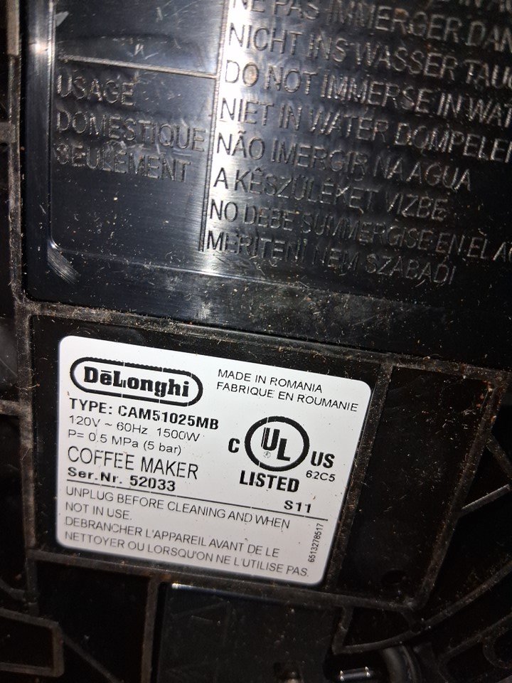 Tested for power, the water tank is broken but it can be replaced and purchased, the stand is also crack a bit, there is also coffee residue and water marks, see photos. https://www.delonghispareparts.com/products/delonghi-cam51025mbespresso-machine-as00005435-replacement-part
