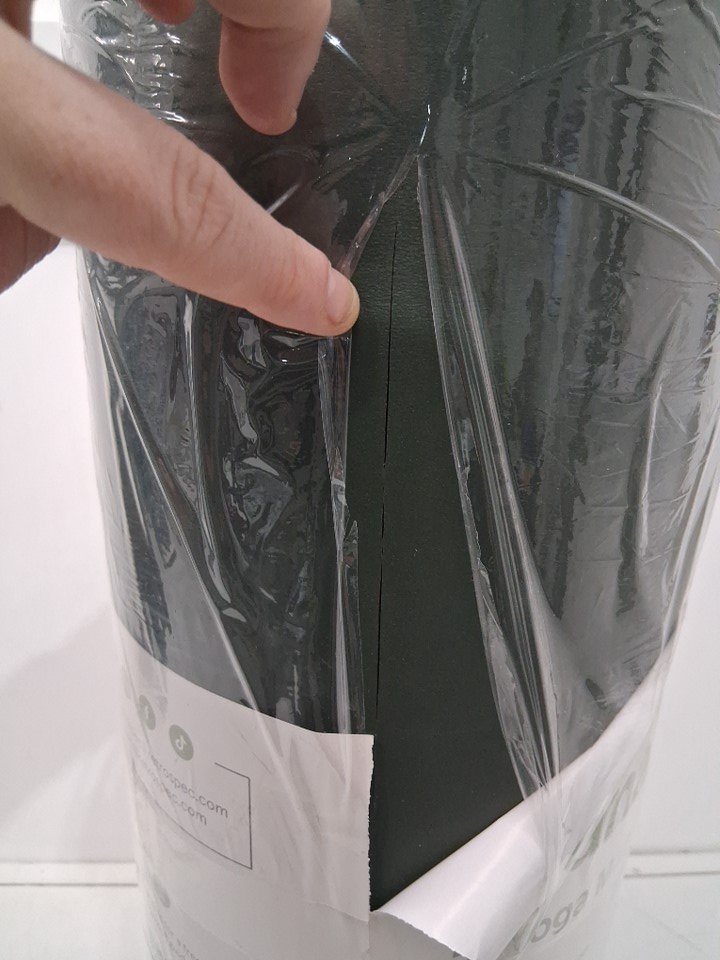 yoga mat is still sealed, however mat has a "slice cut" in it