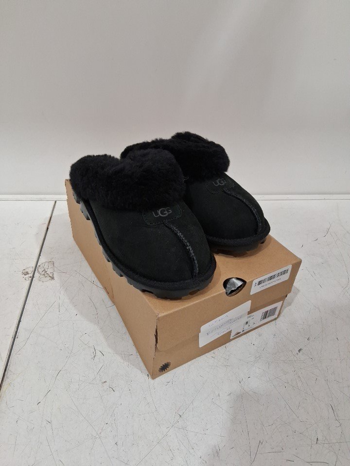 WOMENS UGG COQUETTE SLIPPERS- SIZE 8- BLACK (MODEL: 5125)