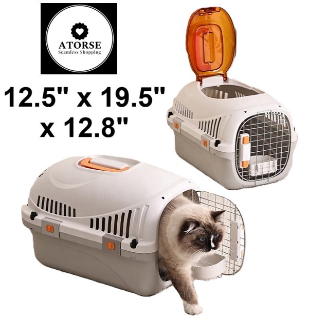 'ATORSE Hard Sided Pet Cat Carrier - 12.5" x 19.5" x 12.8" - Grey (Model: ATOR64064694)