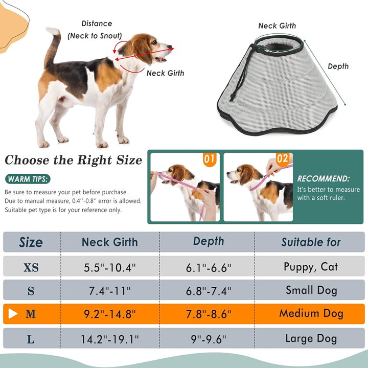 VavoPaw Pet Recovery Collar/Cone Adjustable - Large - Grey